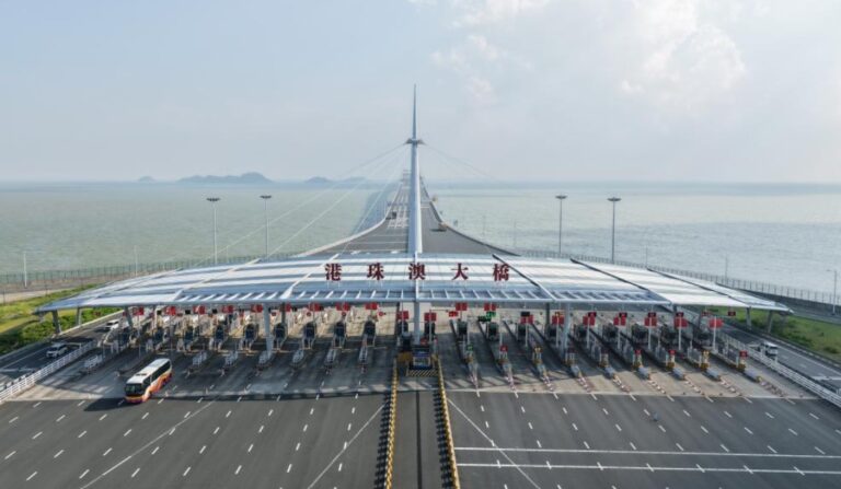 港珠澳大桥上,技术人员正在对相关通讯设施做最后调试。这条串联三地的大…