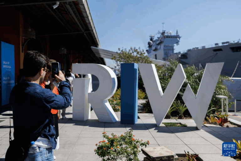 8月13日,参观者在巴西里约热内卢举行的里约创新周上拍摄展会标识。 8月12…